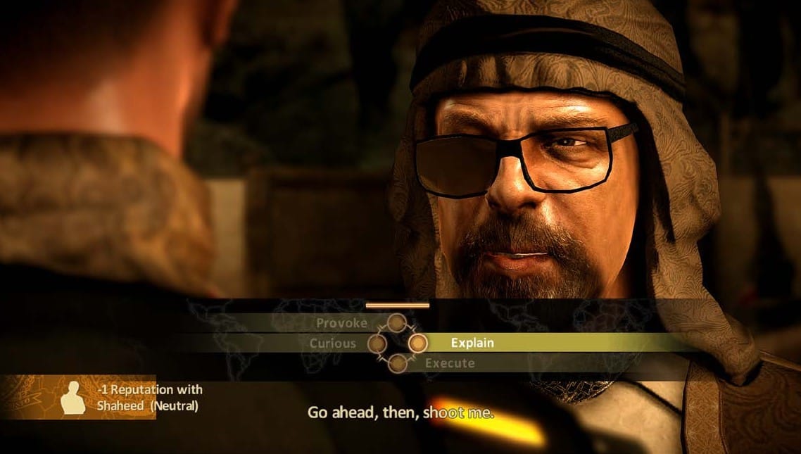 Từng quyết định, câu trả lời, thông tin đã thu thập được đều có hệ quả (cả lớn lẫn nhỏ) mà không mấy game có thể sánh bằng, yêu cầu nhiều lần chơi lại để có thể khám phá tường tận. Bạn còn có thể chọn cách tiếp cận nhiệm vụ, ví dụ như đột nhập vào căn cứ không quân ngay từ đầu, hoặc truy đuổi tay buôn vũ khí địa phương để thu thập thông tin trước.