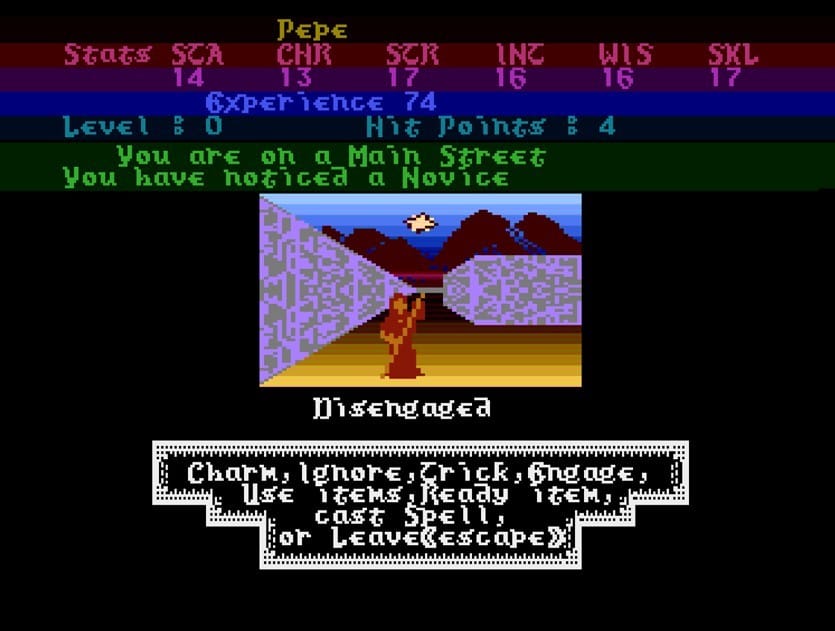 Khi bạn bước ra khỏi phi thuyền, những con số quay trên đầu bạn sẽ thiết lập các chỉ số ban đầu của bạn trong thế giới Alternate Reality. Bên cạnh những chỉ số truyền thống như Sức mạnh, Sức bền, Kĩ năng, Thông thái và Trí tuệ, game cũng có các thông số phụ cho nhân vật như háu ăn, say xỉn và kiệt quệ được ẩn đi. Đến tận 30 năm sau, tác động của các chỉ số đến các sự kiện và một số cuộc chạm trán nhất định vẫn còn gây nhiều tranh cãi.