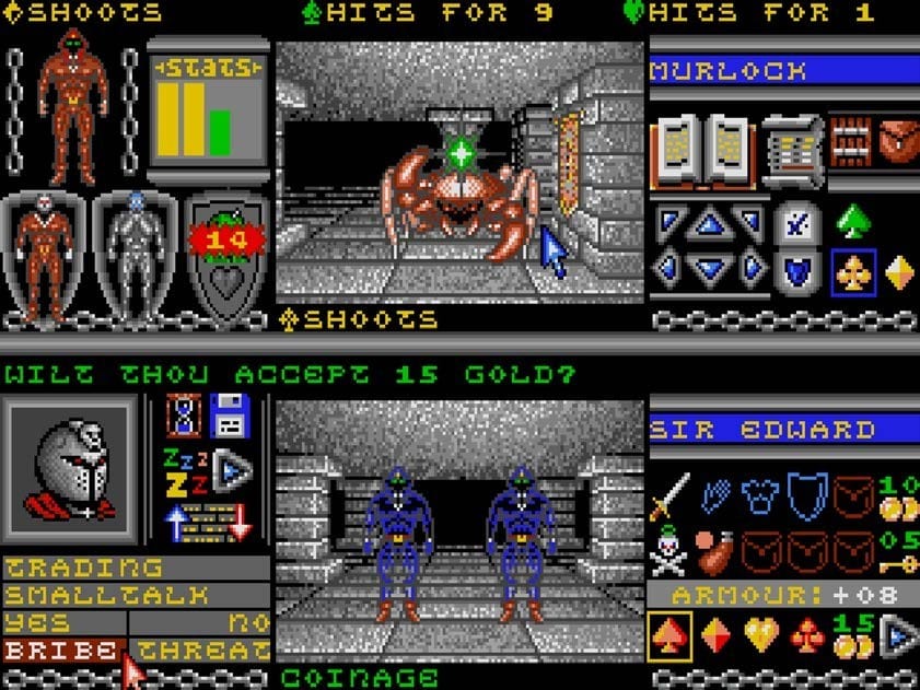 Người chơi cũng có thể dừng lại và (thử) nói chuyện với quái vật, nhưng ngoài mục đích trao đổi hoặc sử dụng cửa hàng thì chẳng có lí do gì để làm vậy. Quá nhiều ý tưởng thú vị, quá ít hướng khai thác hiệu quả. Phiên bản 8-bit của Bloodwych thậm chí còn cắt bỏ nhiều ý tưởng hay ho trong số đó.