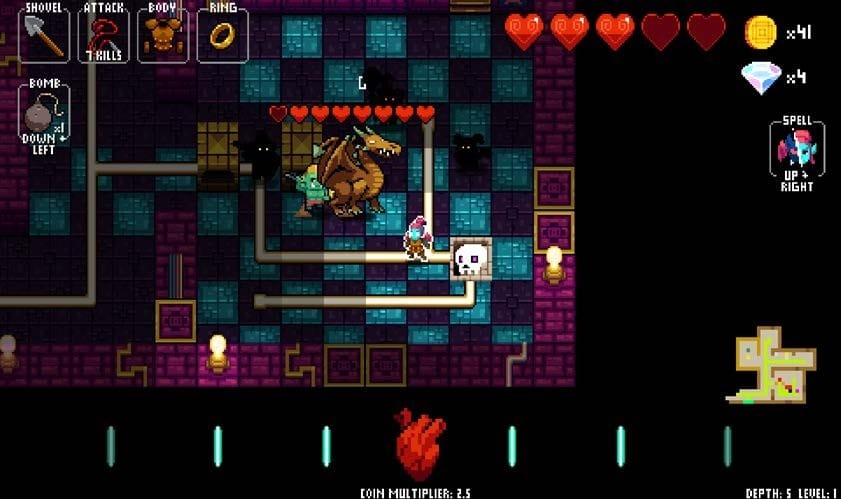 Crypt of the NecroDancer là tựa game roguelike đầy màu sắc với một nét biến tấu độc lạ: kẻ địch trong game đều di chuyển và tấn công khớp theo nhịp nhạc.