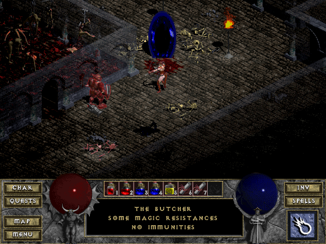 “Ahh, fresh meat.” Câu nói giờ đã trở nên bất hủ của The Butcher (Đồ Tể), gã phản diện thực sự đầu tiên trong Diablo, như một lời tiên tri báo trước những gì sắp xảy ra. Đúng vậy, Diablo và những phần hậu bản giống như một chiếc máy xay thịt của đồ tể. Một trải nghiệm ám ảnh mà trong đó, người chơi phải đương đầu với những đợt công kích không ngừng nghỉ của những sinh vật ma quái. Hành trình của bạn sẽ kết thúc sau khi đối đầu với chính hiện thân của cái ác tối thượng: Diablo.