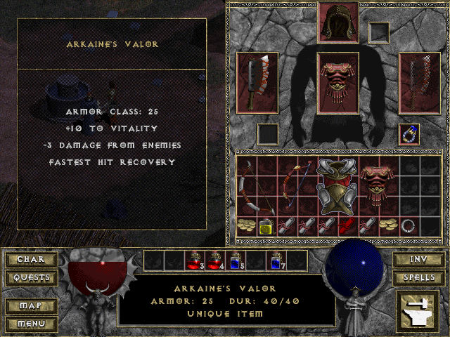 Hiếm có tựa RPG nào đạt được thành công nhờ phong cách tối giản như Diablo. Thế giới game hấp dẫn đến mức không thể bỏ qua, còn hệ thống chiến lợi phẩm mang tính đột phá mang đến giá trị chơi lại gần như vô tận. Luôn luôn có vật phẩm mới để tìm, quái vật mới cần tiêu diệt và mê cung gothic mới chờ đợi bạn khám phá. SD