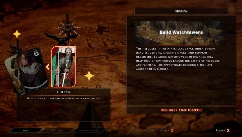 Khi khám phá các khu vực bao la và dành thật nhiều thời gian để hoàn thành các nhiệm vụ phụ, bạn sẽ được tưởng thưởng sức mạnh và tầm ảnh hưởng. Đây là công cụ tối quan trọng để mở rộng Inquisition và mở khoá các khu vực mới. Khi danh tiếng của Inquisition lớn dần, lựa chọn của bạn sẽ ảnh hưởng đến diễn biến của cốt truyện và cách mọi người nhìn nhận bạn. Liệu bạn sẽ hành quyết kẻ địch hay chỉ đơn giản là bắt hắn đi lưu đày với hội Grey Warden? Những lựa chọn này sẽ ảnh hưởng đến kết quả của câu chuyện, do đó mang đến giá trị chơi lại không hề nhỏ. Bất kì lựa chọn nào của bạn dù là nhỏ nhất cũng đều quan trọng.