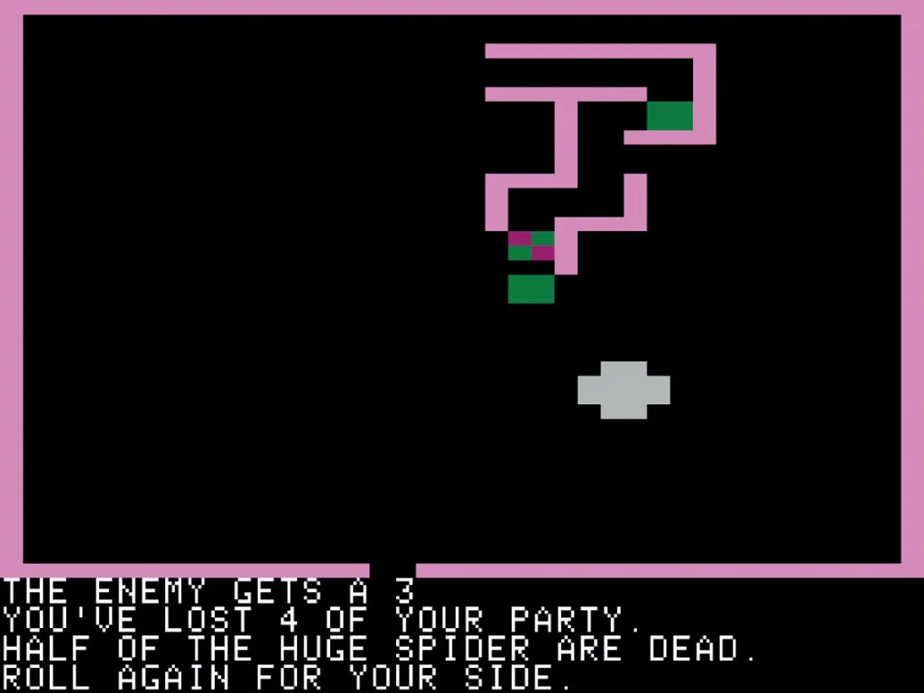 Cơ chế chiến đấu rất đơn giản, bạn chỉ cần quay ngẫu nhiên các chỉ số công kích, kết quả sẽ được cộng dồn vào sức mạnh của bạn để xem bạn có đánh trúng kẻ địch hay không. Mọi kẻ địch trong game này đều chết sau hai đòn, chỉ là chúng sẽ càng trở nên khó đánh trúng hơn khi bạn càng đi sâu vào hầm ngục. Bạn cũng phải quay ngẫu nhiên chỉ số tấn công của kẻ địch và nếu chúng đánh trúng bạn, bạn sẽ mất 1-3 thành viên trong tổ đội.