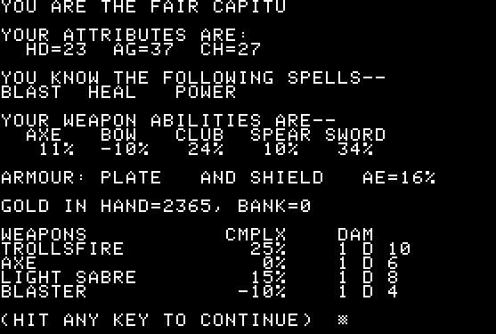 Điều này có nghĩa là bạn có thể mang thanh gươm ma thuật lấy được ở cuối Hang tân binh đi khám phá vũ trụ, chống lại cuộc xâm lăng của người ngoài hành tinh và sau đó mang khẩu súng plasma vừa kiếm được đến Hy Lạp cổ đại để chiến đấu với Minotaur hay bất cứ cuộc phiêu lưu nào mà bạn lấy được từ đồng nghiệp, trao đổi qua thư hoặc tự tạo. Hãy nhớ rằng, đây là thời kì mà Internet hay thậm chí là cả BBS còn chưa phổ biến.