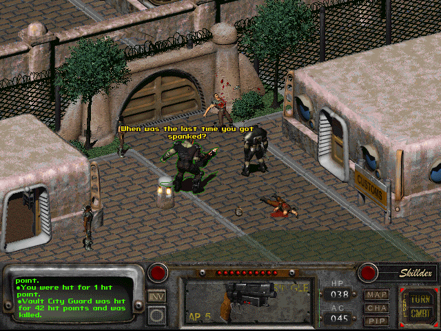 Trong Fallout 2, sự tự do của người chơi không chỉ nằm ở thế giới mở. Game còn được thiết kế để khuyến khích bạn chơi theo cách riêng. Về cơ bản, đạn dược khá hiếm lúc đầu và kẻ địch đông đảo với trang bị tận răng sẽ hối thúc bạn tìm kiếm các trang bị tử tế đầu tiên, thường theo những cách chẳng mấy vẻ vang. Xin nhắc lại, thế giới Fallout rất khắc nghiệt, và bạn có thể sẽ phải chọn phe trong cuộc chiến vặt vãnh giữa các băng đảng, đào huyệt, bán nô lệ và cướp nhà của người lương thiện để tồn tại.