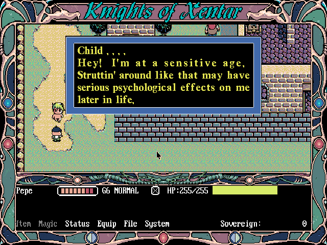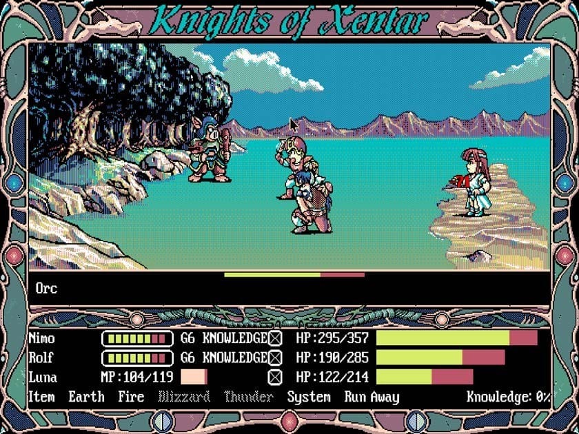 Knights of Xentar, tựa RPG khiêu dâm thứ hai (và cuối cùng) do Megatech bản địa hoá, vốn có tên gốc là Dragon Knight III. Hai phần đầu tiên của loạt game này thuộc thể loại khám phá hầm ngục góc nhìn thứ nhất đơn giản, nhưng DK3 lại lấy cảm hứng từ những bản Final Fantasy đời đầu, với góc nhìn từ trên xuống và một tổ đội đầy đủ thay vì chỉ một mạo hiểm giả lẻ loi.
