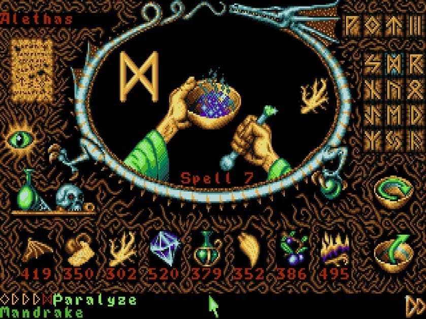 Hệ thống phép thuật là điểm nhấn của trò chơi, cho phép Runemaster có thể tạo ra nhiều loại bùa phép bằng cách kết hợp các chất phản ứng và cổ ngữ. Ví dụ, để tạo một phép tấn công mà khi dính 1 kẻ địch, sẽ lan ra những kẻ địch gần kề, gây sát thương và tê liệt, Runemaster sẽ cần những cổ ngữ Missile (cho đặc tính bay), Surround (cho hiệu ứng môi trường), Damage (để gây sát thương) và Paralyse (để làm tê liệt). Sau đó các nguyên liệu sẽ được trộn trong cối thông qua một hoạt ảnh đẹp mắt và trở thành bùa phép, từ đó Runemaster có thể thi triển nó một lần.