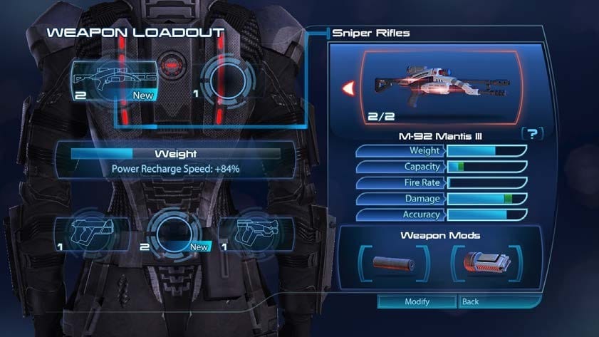 Ngoài ra, Shepard giờ đây không còn bị hạn chế về trang bị, vì mọi lớp nhân vật đều có thể sử dụng mọi loại vũ khí. Thêm vào đó, bạn có thể tuỳ chỉnh vũ khí bằng nhiều linh kiện, như băng đạn mở rộng hay ống ngắm tăng độ chính xác. Những thay đổi đáng hoan nghênh này mở ra nhiều tổ hợp súng và kĩ năng thú vị.