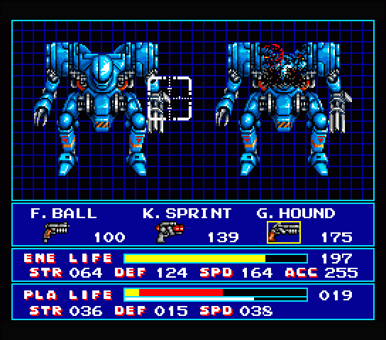 Vâng, đánh theo lượt kiểu FPS! Mỗi lượt, bạn chọn vũ khí và ngắm bằng tâm bắn vào một điểm trên màn hình – bạn có thể bắn vào thân để gây sát thương, hoặc nhắm vào bộ phận cụ thể để giảm chỉ số và làm tê liệt kẻ địch. Ví dụ: bắn vào mắt/cảm biến sẽ giảm độ chính xác, còn bắn vào vũ khí sẽ giảm sức tấn công.