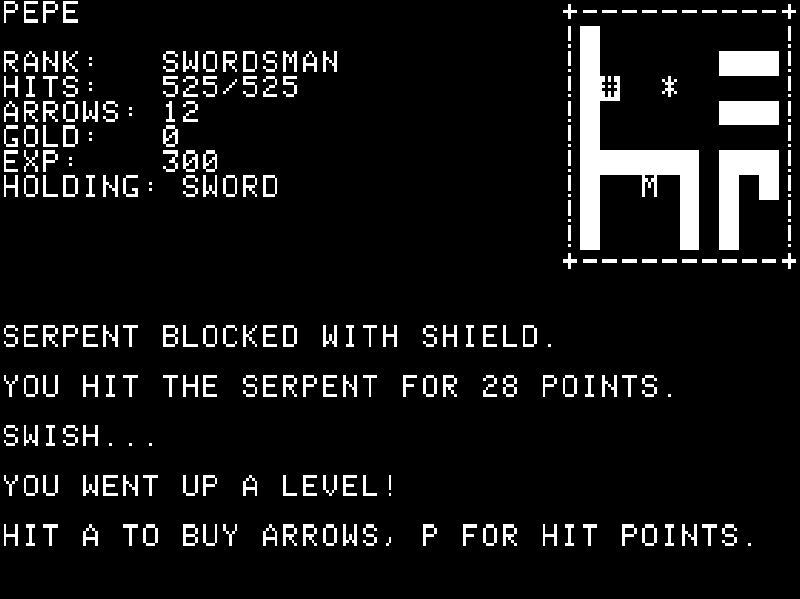 Chiến binh của bạn có thể di chuyển theo 8 hướng và tấn công bằng kiếm hoặc cung. Khi giết quái vật, bạn sẽ nhận được XP, và khi đã kiếm đủ kinh nghiệm, bạn có thể quay lại điểm xuất phát để hồi máu và thăng cấp. Nếu tình hình trở nên quá nguy hiểm, bạn có thể dùng ma thuật để biến thành một con chim nhanh nhẹn và cố gắng vượt qua quái vật.