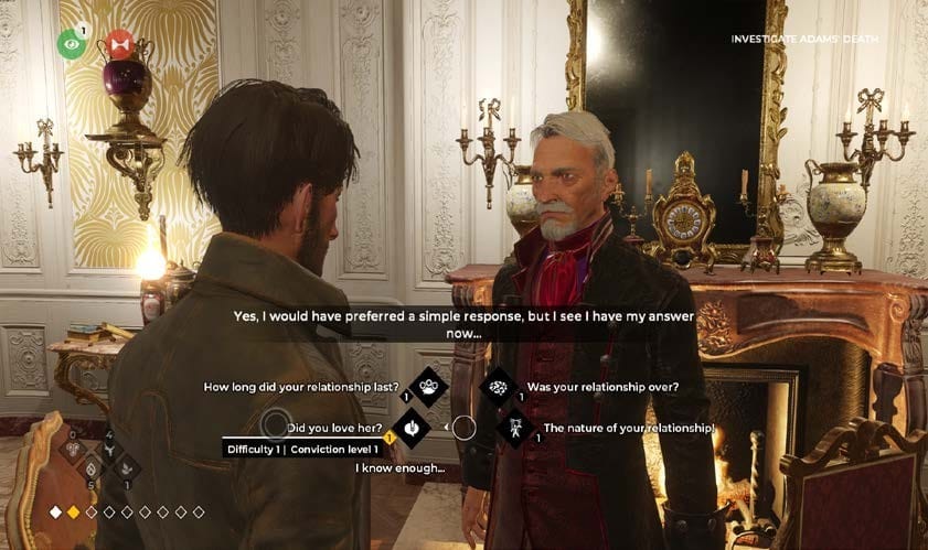 Trong hội thoại, hệ thống này sẽ cho phép de Richet tuỳ biến cách tiếp cận từng nhân vật. Mỗi nhân vật đều có điểm mạnh và điểm yếu tương ứng với kĩ năng của de Richet, khiến họ dễ hoặc khó bị ảnh hưởng bởi chuyên môn của anh hơn.