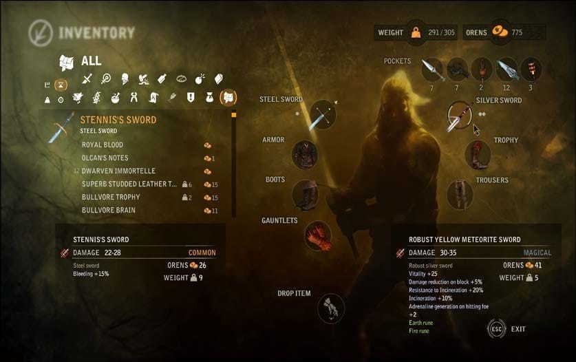 Vũ khí cận chiến khác như rìu, búa, chuỳ và giáo cũng xuất hiện, nhưng kém hiệu quả hơn kiếm giống như phần trước. Lựa chọn phòng thủ bao gồm né lăn và chặn đỡ; chặn đỡ tiêu hao thể lực, cũng là tài nguyên dùng để niệm ấn, một loại ma thuật của thuật sĩ. Hệ thống Sign nhìn chung vẫn hoạt động như trước, ngoại trừ Quen giờ sẽ tạo áo giáp ma thuật hấp thụ sát thương.