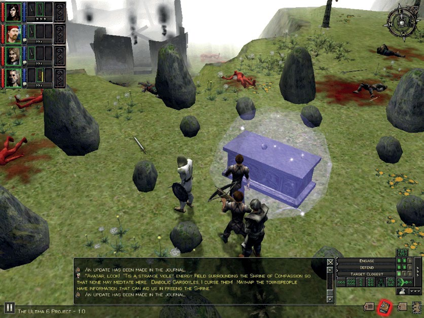 Bạn sẽ sớm nhận ra rằng quyển Codex vốn không phải của Britannia và trên thực tế, bị trộm mất. Và cuộc giải cứu của Lord British đã khơi mào cho cơn đại hoạ kinh hoàng tàn phá nhà cửa và dân cư Gargoyle. Giờ đây, khi sách thiêng bị lấy mất còn thế giới bị phá huỷ gần hết, họ quyết định lên đường trả đũa Britannia. Chỉ đến hai phe hoà giải thì Avatar mới có thể chiến thắng. Trên thực tế, người chơi có thể chọn cách gần như không dùng đến bạo lực. Bạn thậm chí còn không cần tăng cấp, và chỉ có khoảng 2 – 3 trận chiến bắt buộc (lưu ý là bạn có thể bỏ qua trận mở đầu). Hầu hết những người chơi thông minh có thể hoàn thiện các mảnh ghép cốt truyện theo phương thức hoà bình, và bạn hoàn toàn có thể bỏ qua một số phần trong game.