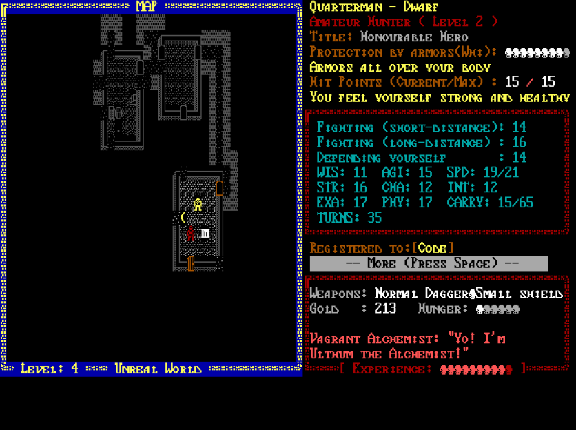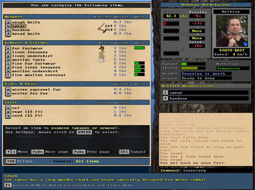 Đây chỉ mới là một phần triết lí của UnReal World về tương tác trong game, vốn nổi tiếng về độ khó đến khắc nghiệt trong cộng đồng roguelike: bạn cần đầu tư rất nhiều thời gian để có thể sống thoải mái trong UnReal World.