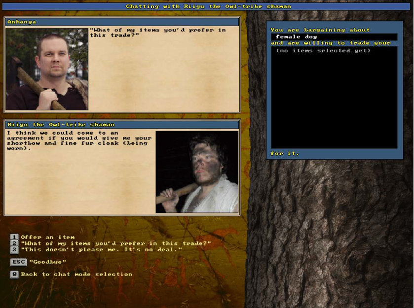 Phần thưởng không bao giờ chứa tiền vì tiền tệ không tồn tại trong game. Buôn bán sẽ dựa trên quan điểm thế nào là "trao đổi cân bằng", và cho hay nhận thêm vật phẩm sẽ chỉ giúp bạn cải thiện vị thế. Tất nhiên, người chơi cũng có thể gây chiến với các ngôi làng lân cận. Các thương nhân ngoại quốc có thể là nguồn cung cấp vật liệu hiếm như vũ khí và áo giáp sắt vốn không có tại địa phương; và với kĩ năng cũng như sự chuẩn bị phù hợp, bạn có thể hoàn toàn thống trị một ngôi làng để chiếm đất và chiến lợi phẩm. Thêm vào đó, bạn còn có nhân vật AI cùng đồng hành, giúp bạn làm các công việc xây dựng và sinh tồn hằng ngày. Việc cải tiến AI vẫn là hướng phát triển trọng tâm của game. Phiên bản 3.6 gần đây nhất đã có thêm NPC lang thang săn bắn khắp mọi nơi, mở ra nhiều cơ hội mới cho các mối quan hệ cộng tác và thù địch.