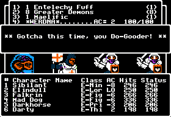 Tuy nhiên, quái vật là một đám vô kỉ luật. Chúng không trực tiếp tuân theo lệnh của Werdna. Tệ hơn nữa, hầu hết kẻ địch – mà Werdna mỉa mai gọi là "do-gooders" (bọn "vác tù và hàng tổng") – có thể giết bạn chỉ bằng một hay nhiều nhất là hai đòn, và cứ cách mỗi bước chân là bạn sẽ chạm trán với họ. Một lần tung xúc xắc đen đủi, một bước chân sai lầm hay một quyết định ngu ngốc, và bùm! Bạn đã chết và phải tải lại game.