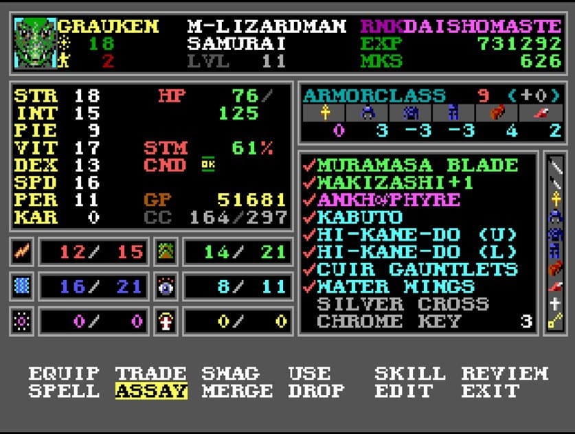Số lượng không phải lúc nào cũng đồng nghĩa với chất lượng, nhưng cùng với tính năng chuyển đổi phân lớp sẵn có, quá trình phát triển của nhân vật trong Wizardry VI trở nên bùng nổ – chứng kiến nhân vật của bạn đi từ một miếng mồi ngon thành cỗ máy giết chóc vẫn khoái chí hơn bao giờ hết.